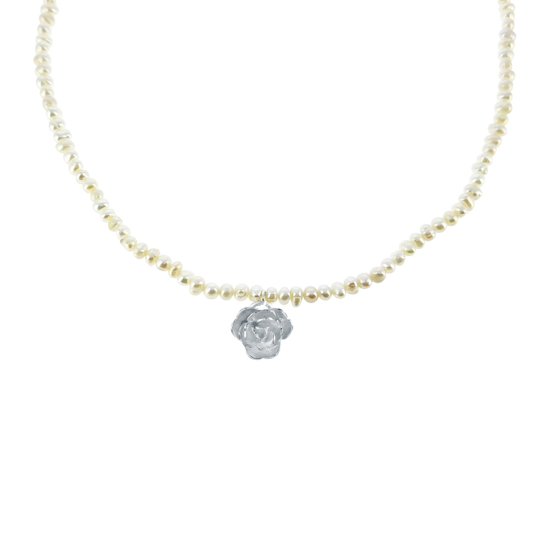White Rose Floral Pearl Necklace